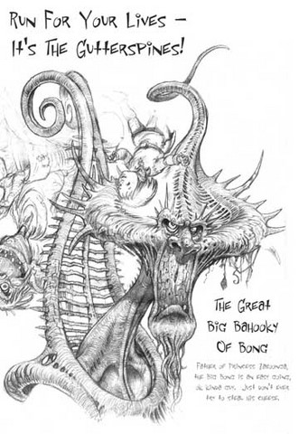 The thing that will drive the plot along and lead to further action and adventure, will be the efforts of Flail, Bilebag and the Swarm, to retrieve the Transmogriplex. With it, they reckon they'll be able to take over our world. As old Gimlet would say, though: "Princess Zaboonga and The Gutterspines ain't about to lie down an' let that happen!"