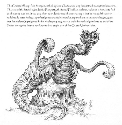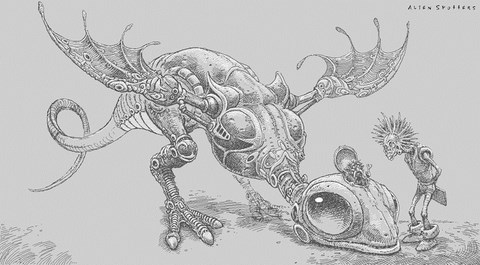 The Essential Alien Spotter's Companion would purport to be the collected drawings, paintings, sketches, film footage, notes and ramblings of an eccentric, Galaxy-hopping, alien anthropologist, and his young assistant, which had just come to light.
